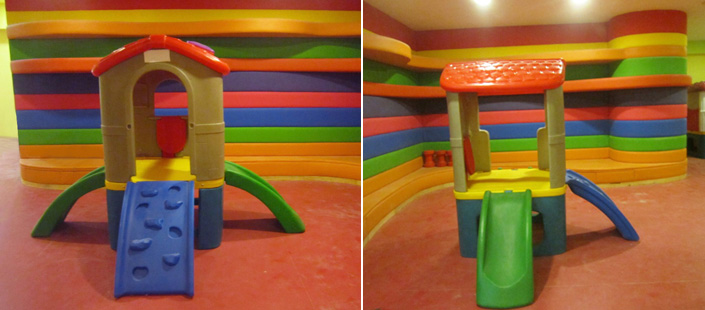 Some of the installed equipments such as climber and slides are portable and allow conversion of the room into a wide open space so that other ‘fun-vacation’ activities can be conducted here. Although these equipments are movable they are sturdy and can easily handle playing children’s weight. The equipments are arranged in such a manner that a caretaker has a clear peripheral view of the room. This further confirms high safety of the zone as no child would be out of your sight.