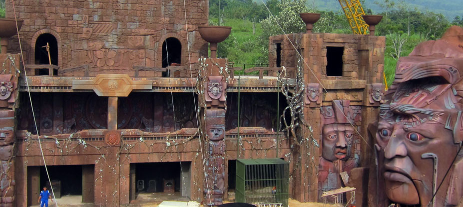 We have created dense landscapes with a large waterfall and a stream cascading through forest. Visitors leisurely walk through the replica of the rainforest and take their seats to watch the show. The show is a further extension of adventure as an exciting drama full of stunts performed by Latin actors unrolls.